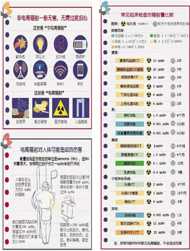 體檢車經(jīng)過幾十年的發(fā)展越來越先進,DR體檢車上面裝有車載DR設(shè)備。可以做胸部X光線檢查。一臺透視儀在體檢者胸前來回移動照射,醫(yī)生在另一頭的檢查室觀察。體檢車放射檢查的確有利有弊是一把雙刃劍,不應檢查過度,也不必因此諱疾忌醫(yī)。因為通過檢查可以更加容易對患者的病情確診,對癥下藥。放射性體檢,對身體或多或少有點傷害,主要的危害是放射檢查對我們是通過來自X線產(chǎn)生的電離進行輻射。但是在必須檢查的情況下研究表明利大于弊,因為接受一定量的輻射是正常的。體內(nèi)可以自我修復。一個大人接受一年100毫西弗的輻射對身體沒多大傷害的。但是不能過度放射檢查。當有必要做的。當數(shù)不能過于頻繁的情況或逐步改善無顯著變化,也沒有必要每天進行審查,否則成為放療的變相。以下是常見臨床檢查的輻射量比較圖
